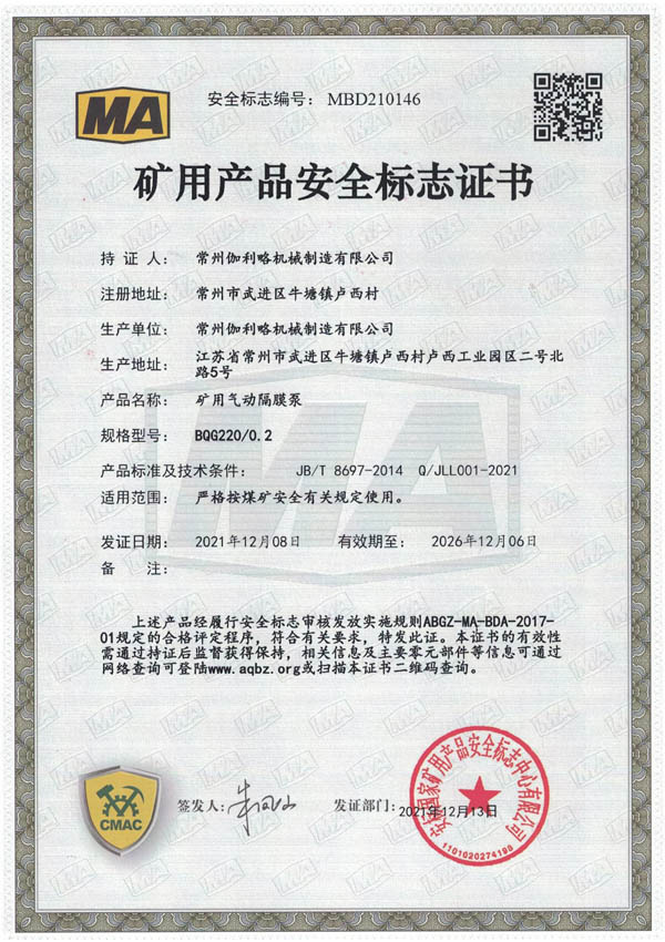 • 礦用安全標(biāo)志證書-BQG220/0.2